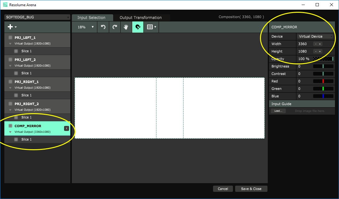 - Set up a virtual output with the exact size of your composition and call it "COMP_MIRROR"