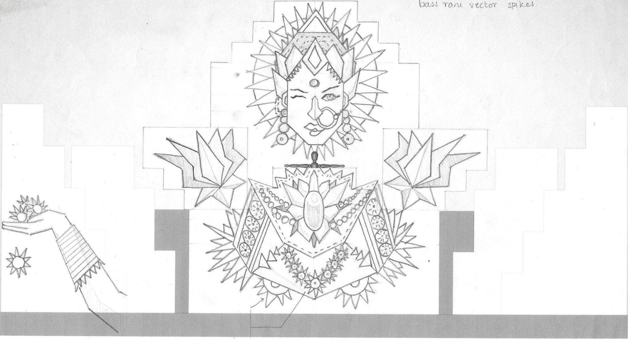 1) When Nucleya’s team approached us for his Bass Yatra Tour, we had around 600-700 sq ft of LED available and that many different versions of the LED layout to explore. We do a few days of pure illustration work along these layouts. Sometimes things just don't click and we break it up and start again. There’s a moment where the practicality of having this layout on stage meets this insane war demon sketch you’ve been rooting for in the start, and then we all sleep well at night.