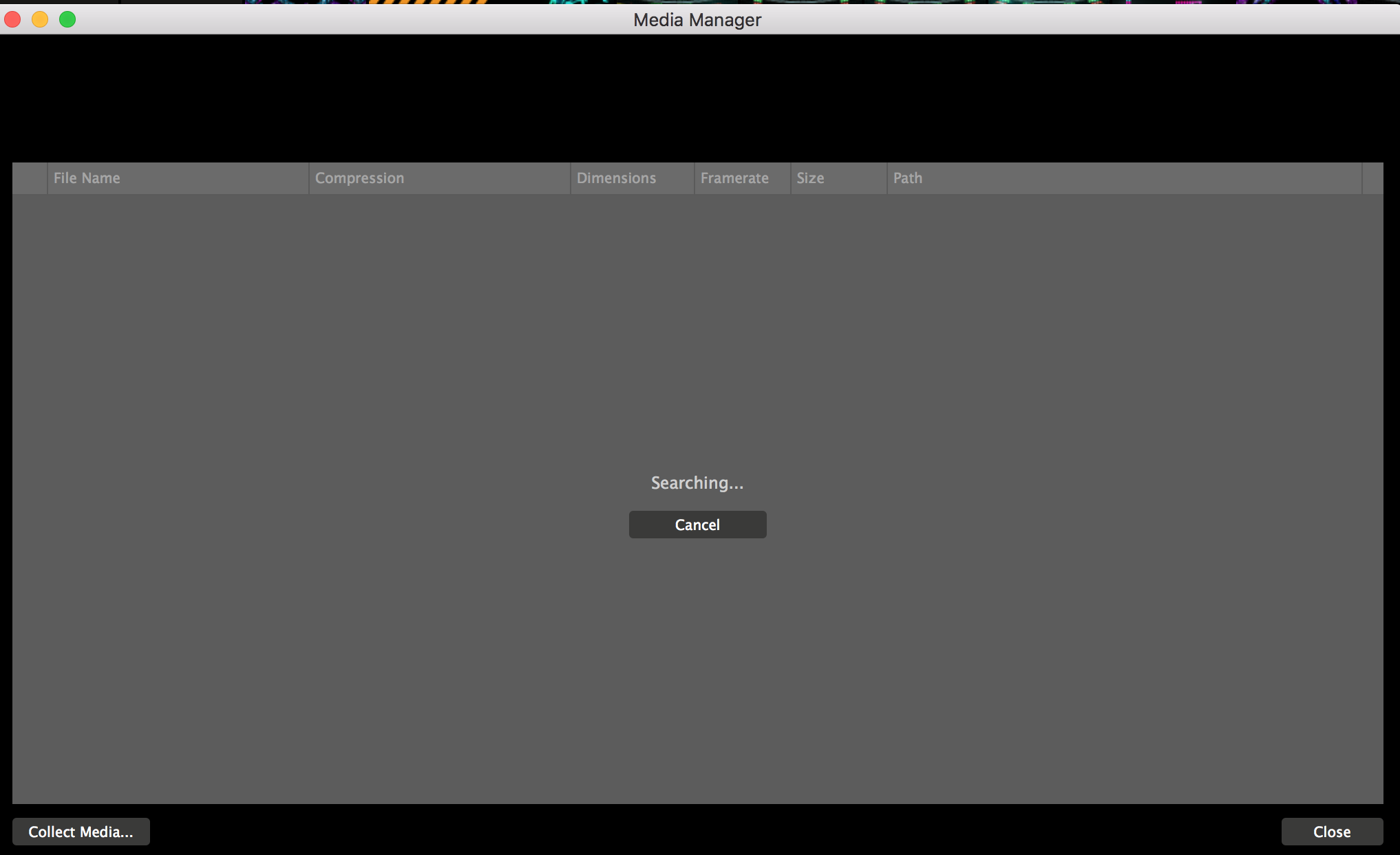 I try the media manager, it found all the files (if I click on Collect Files it shows the right number of clips), but after several minutes (10 minutes) it doesn't appear nothing in the media manager.
