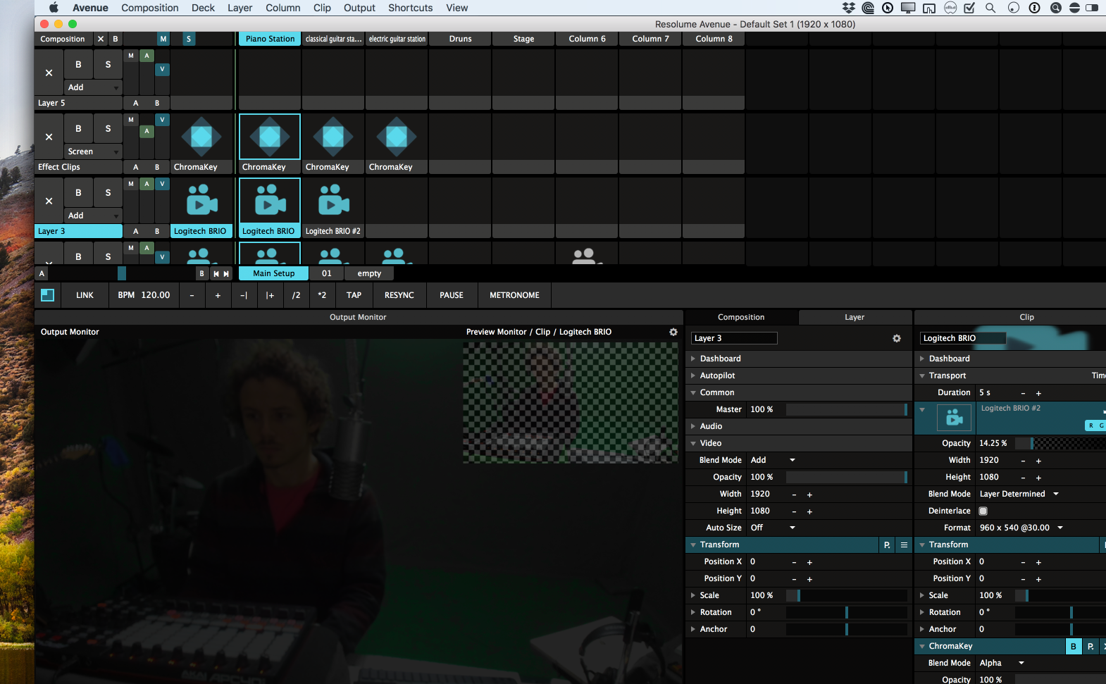 In the images below, my goal is to make the Logitech BRIO webcam clip/layer (that has me and the microphone on it) more transparent while keeping the background at the same opacity. When I adjust the opacity up or down on Layer 3, however, it only adjusts opacity of the layers below and shows the green screen. When I try adjusting the clip opacity, it all gets dark.