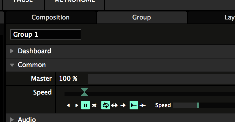 Now you can move the fader on the group anywhere, the clips will play at nominal speed.