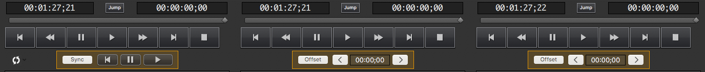 If you look at the attachment for a competing product, Pro Video Server (2 screen grabs), I can set the program up to "Link to Channel 1" and then scrub the timeline ANYWHERE or type in a TIME CODE, then hit ONE button: "SYNC" and all channels are within 1-frame of the lead Channel 1 - then hit PLAY. This can be done in less than 5 seconds!