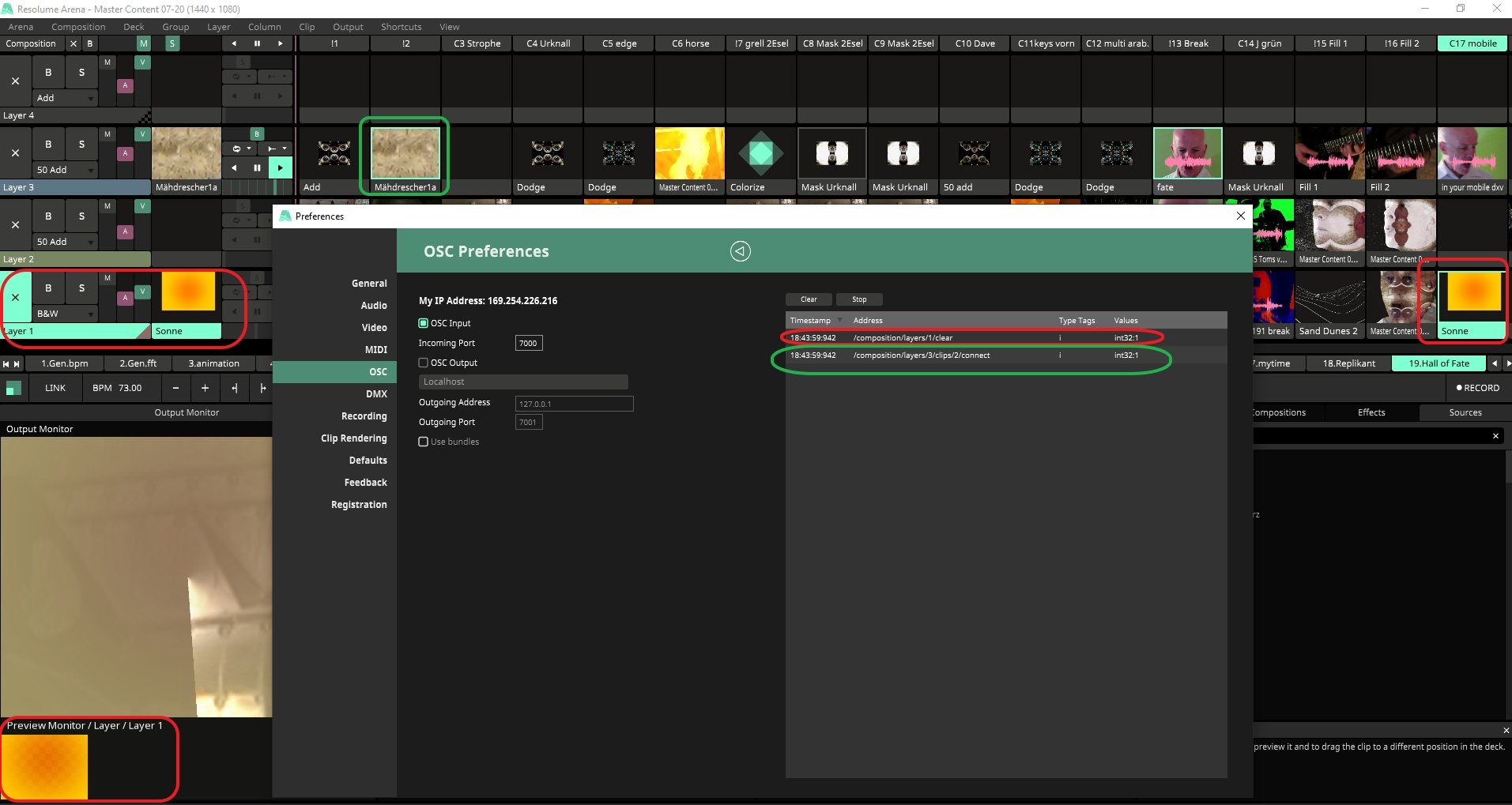 Looks like the layer clear breaks via OSC, if the button status is not set back via /composition/layers/1/clear int 0