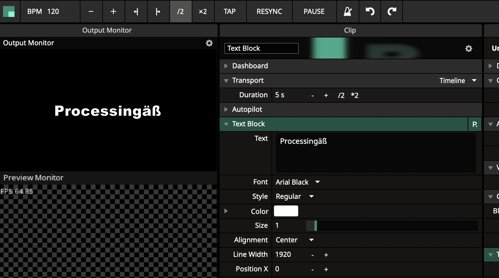 I am using Arena 6. I want to send some OSC strings with Processing to Arena. With all latin characters there is no problem. But when I use german chars like "ä", "ß" etc., they won't get displayed. They are not even identified by Arena, when I look into the OSC protocol. I am sending the right chars with p5Osc. Someone knows how I can fix it? Maybe Arena 6 can't decode these german chars.