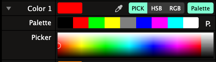 A lot of times there is a color input in the sources and effects shipped with Resolume 7 I can chose a color from a color palette and even animate the palette.