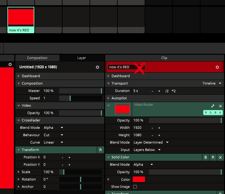 When I drag them to a clip, they're red and say "solid color"