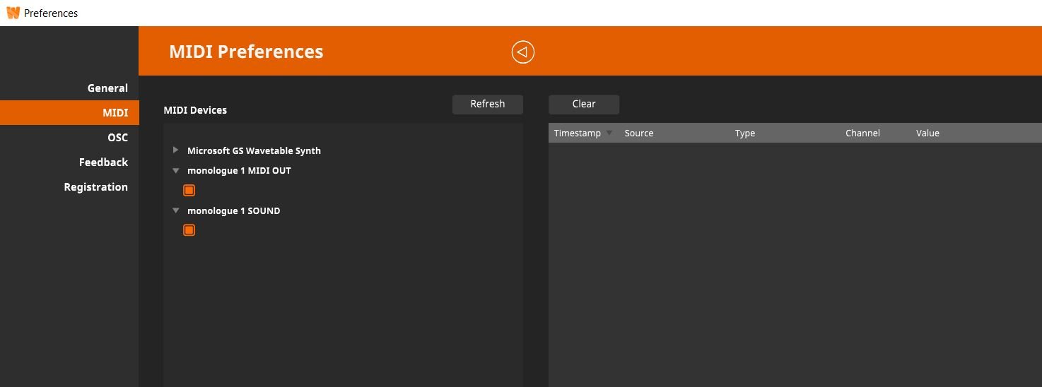 I have a Korg Monologue connected via USB to my PC. Drivers installed, It shows up as a MIDI device