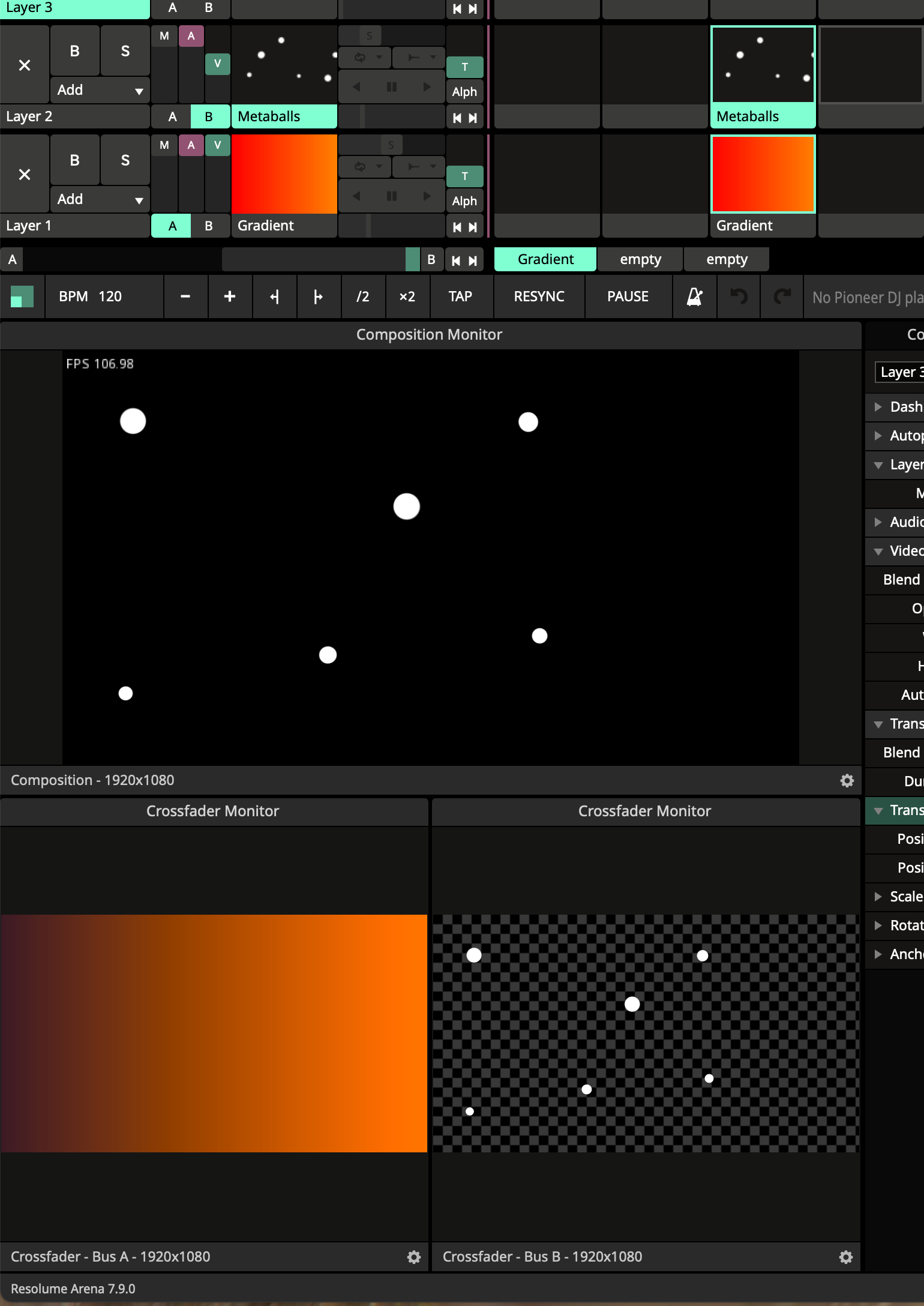 For now the Crossfader bus preview only shows the composition level.