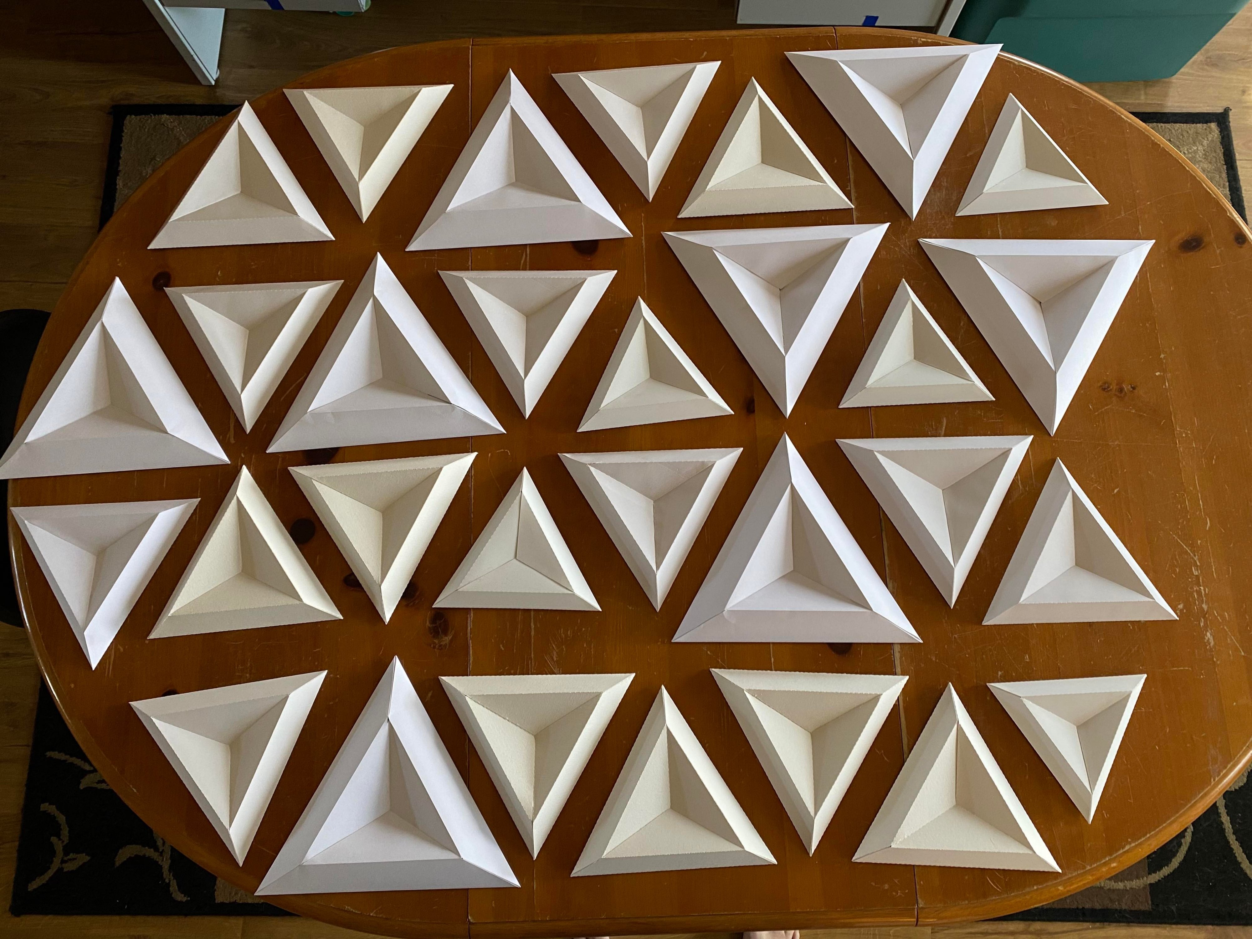 The pyramids are made out of a Yupo paper to make them water proof. I could sent them in an 11 X 14 Envelope and ship them out pretty cheaply however that would mean they would need to be folded and glued at your location.