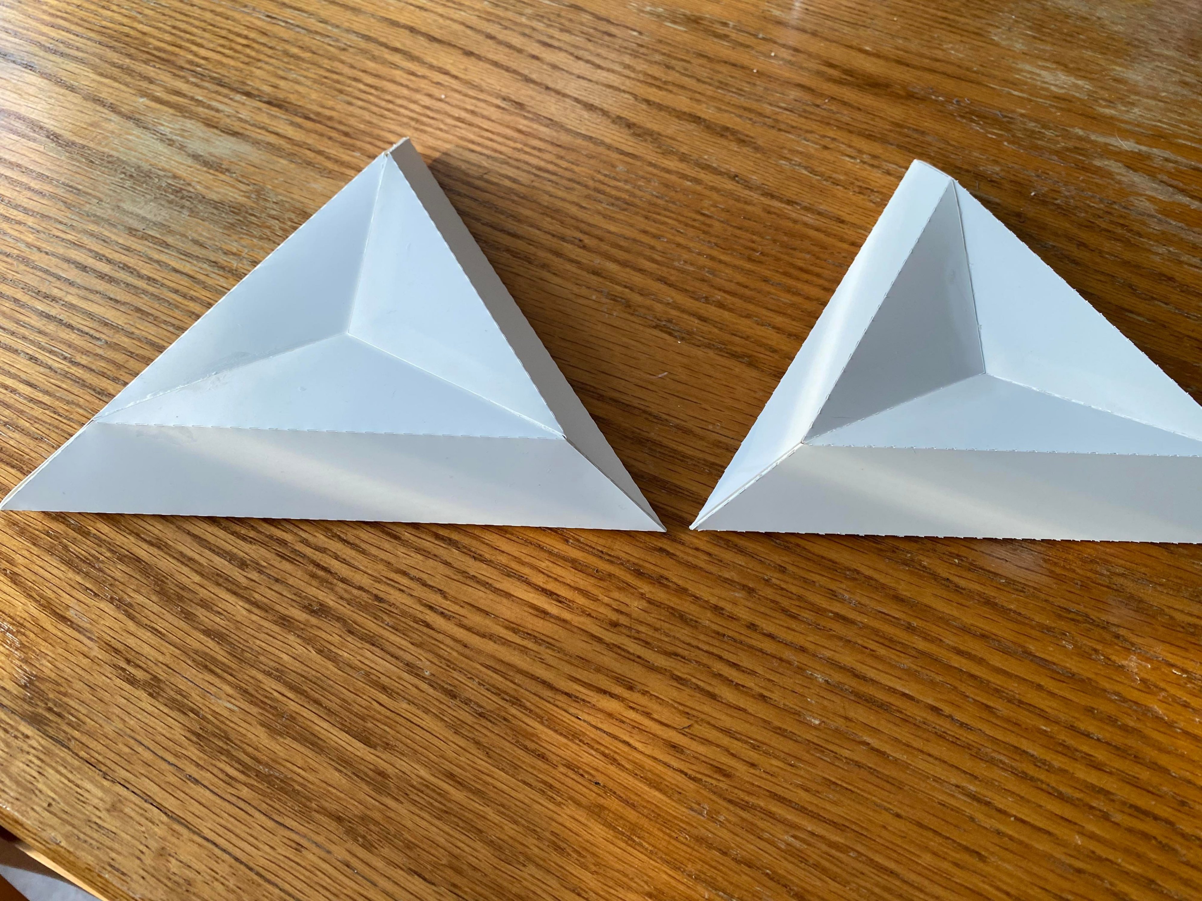 I am very interested in Projection Mapping I really found a profound love for this art form. One of the things I started to look for was an an interesting shape to project on to. Sure I could do the cubes and the basic shapes but if I did my own thing or a shape that was already created out there. I started looking online and did find someone whom was selling shapes that could be assembled on the fly but to me seemed expensive that's when I got the hair brained Idea to make my own shapes and offer them to other artist at a cheaper price. The attached pyramid is what I have come up with. Any of you like this Idea? Let me know.
