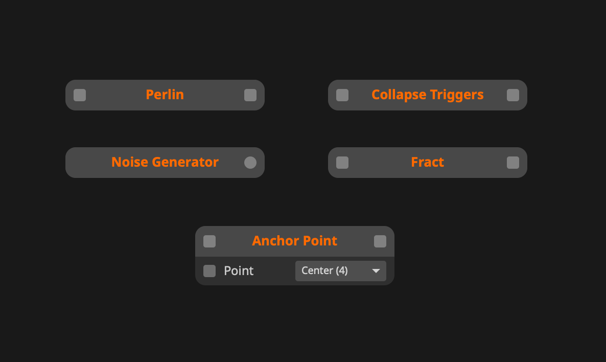Wire gets 5 new nodes with this update: Perlin, Fract, Noise Generator, Collapse Triggers, and Anchor Point. The Perlin Node allows you to run any float type through a Perlin Noise algorithm. The Fract Node returns the fractional part of a floating point number. The Noise Generator provides you with a constant stream of random values. The Collapse Triggers Node allows you to collapse multiple triggers that happen on the same frame into one. The Anchor Point Node allows you to get the center, top-left, bottom-right, etc to set the anchor point of the Transform node so it will then rotate around that point.