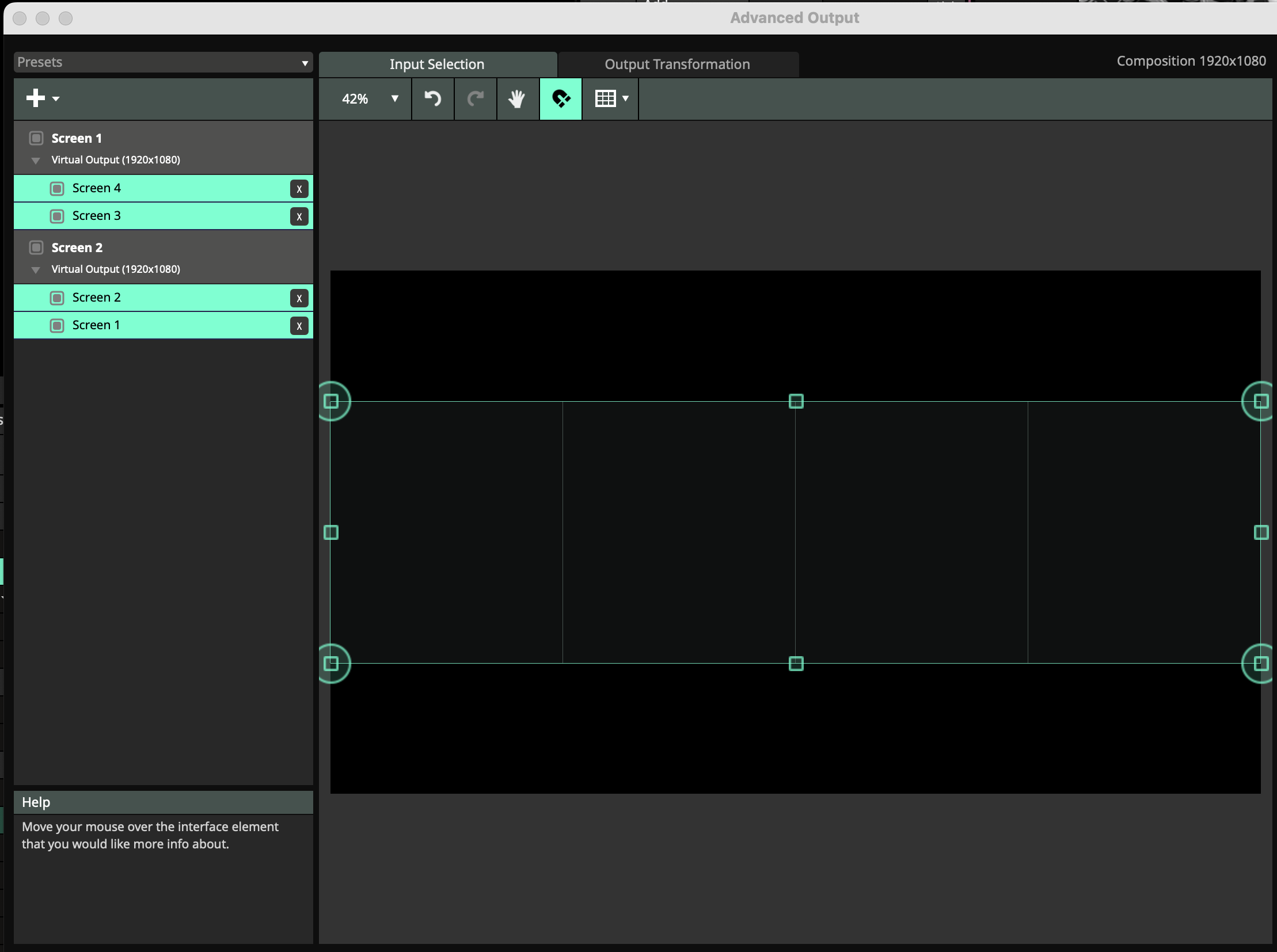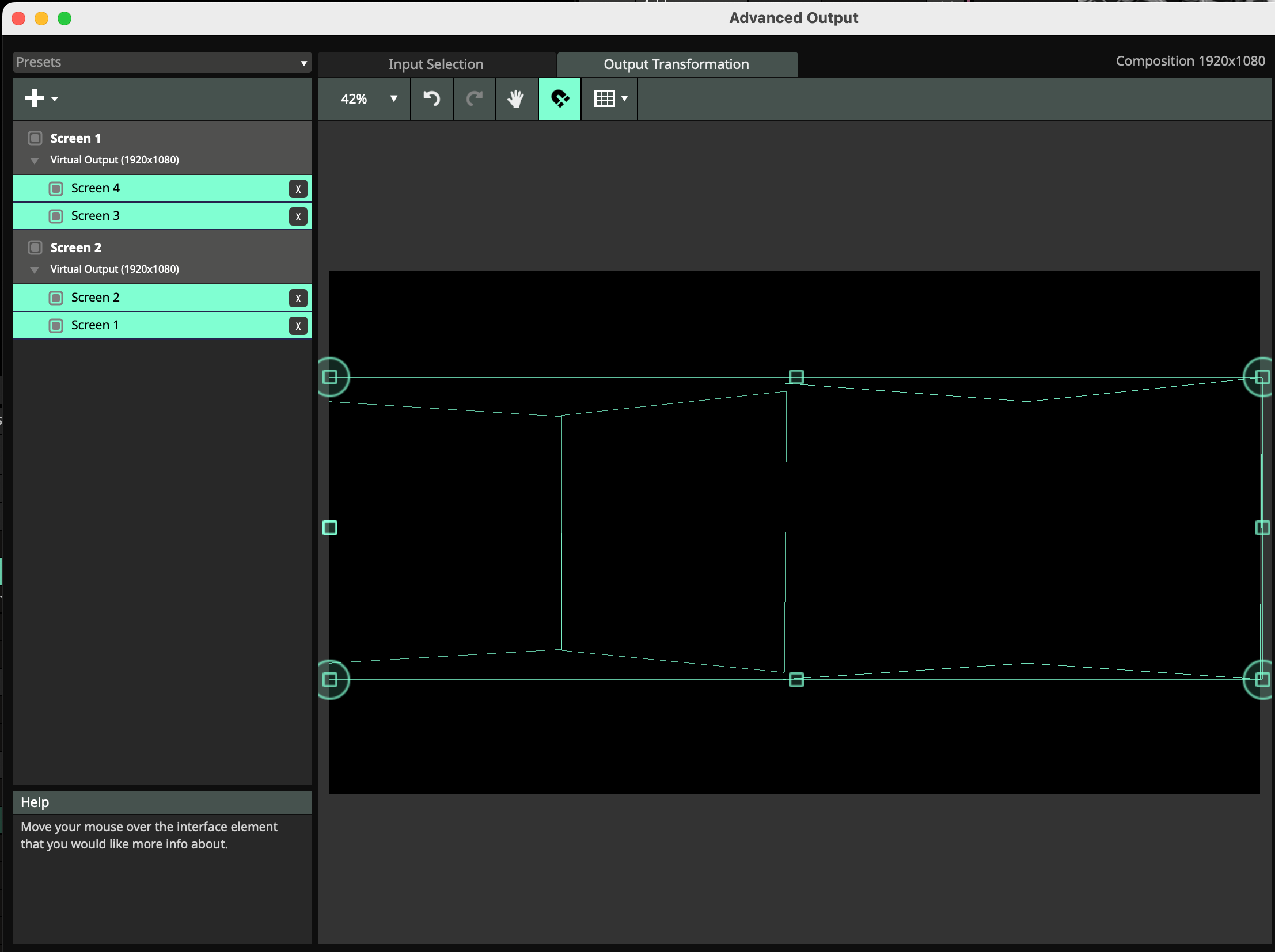 Thanks for this. That's actually a great idea. I'll work on that during downtime.tijnisfijn wrote: Wed Oct 23, 2024 11:21 In your advance output. If you have two screens and both screens have one slice. I would give both screens two slices, one for each face of the wall it's projecting on. Then you get eight points that you can edit to match up your wall. see picts.