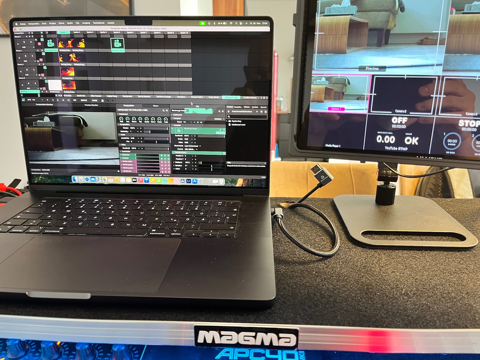 This is especially noticeable with one camera — actually, the highest-quality one — a Blackmagic Micro Studio 4K G1. I’ve attached an example image to illustrate the difference in brightness and quality. You see the MultiView of the Atem Switcher on the right and on the left the live feed via usb-c into Arena.