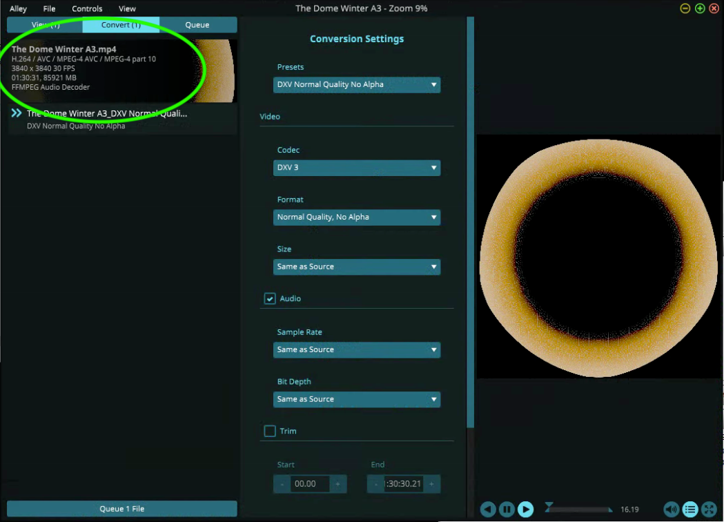1) All files are converted to DXV3 Normal, No Alpha using Alley. They are very large (3840 x 3840 @ 30 FPS) and are about 90 minutes long and about 500 GB. Is there any reason that is too big? They are converted FROM .mp4 H.264