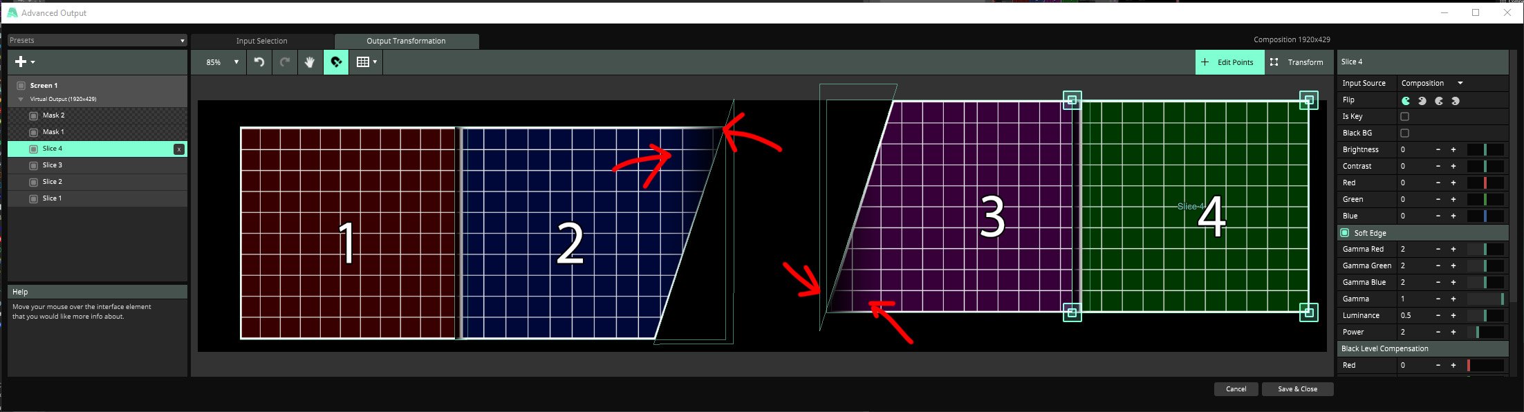 Let me explain better: I want a soft edge between 1 and 2, and then again between 3 and 4 — BUT NOT between 2 and 3.