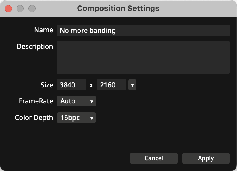 In Avenue and Arena, you will need to change the Color Depth of your composition from the default 8 bpc to 16 bpc. Setting your composition to 16 bpc ensures Resolume processes colors with enough precision to take advantage of a 10-bit output.