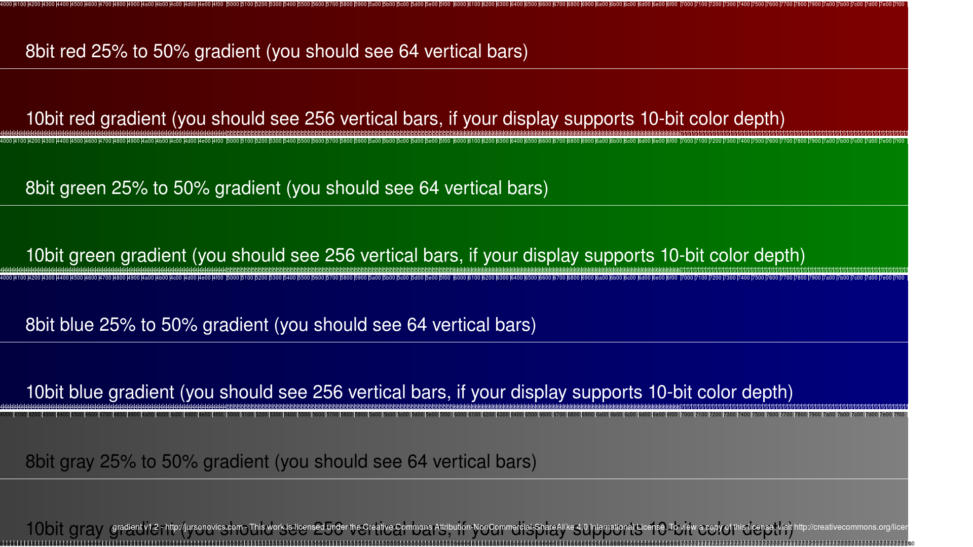 Once your composition, content, GPU and cabling are all configured, it’s time to check whether you’re actually seeing the benefit of 10-bit in the real world.