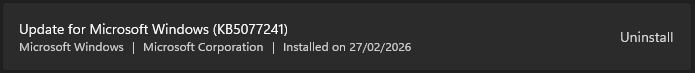 To uninstall go to Windows Update > Update history and see if you find one of the updates mentioned above.