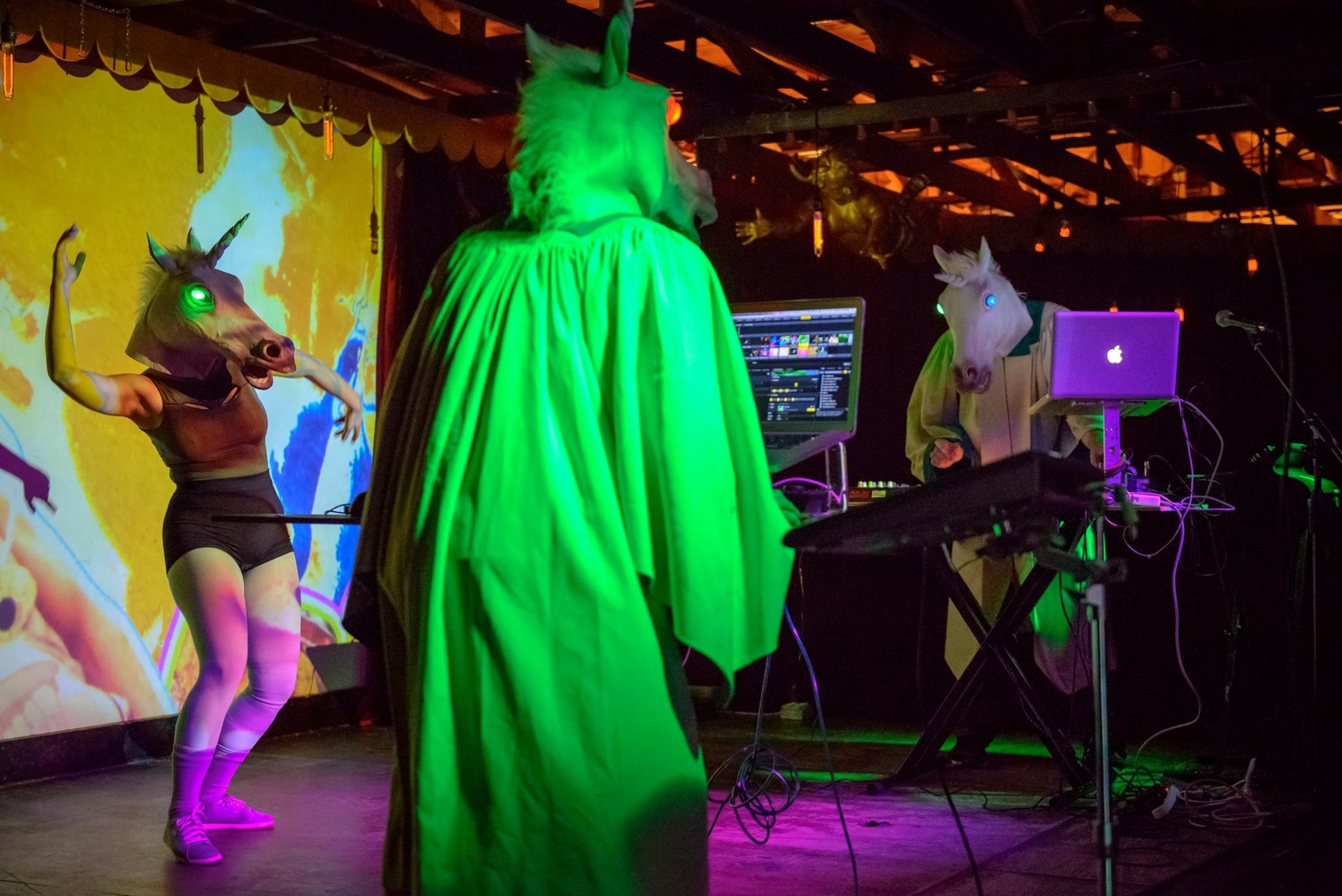 The concept for the project came first, which then spawned many visual and musical ideas. The narrative form and the fact that it needed to be a live music show, meant that there was already a lot of structure imposed before I had started on the musical or visual specifics – for example, I knew that humans were eventually going to emerge later on in proceedings down the universe timeline, and that things were going to start to get darker as complex forms of subjugation, and the like, came along.