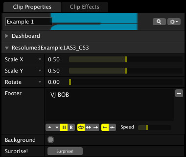 What can we say? Sorry it took a while ... but ... IT ROCKS!!! Flash animations have this crispy colourfulness that you just don't get with video. Flash playback in Resolume has full alpha channel support so transparency looks great. Communication between Flash and Resolume is ActionScript 3 compatible and more powerful than ever so you get perfect live control over your animations with sliders, buttons and text input in the Resolume interface. Programming in AS3 is an absolute joy compared to AS2. We love it, and we hope you do to. Checkout the Manual for a new Flash chapter with all the details. And checkout the samples in the media folder. Start making your own generative visuals!