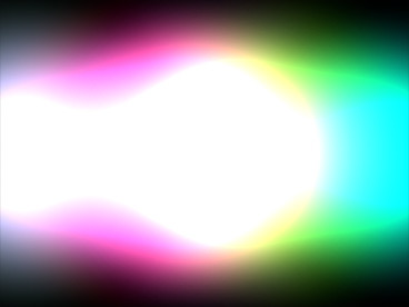 Every emitted particle in this footage changes though the whole colour spectrum. From green to yellow to red to purple to blue to cyan and back to green again.