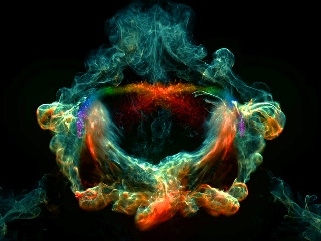 Gorgeous fluid dynamics and silky smooth realflow particles, forever weaving and churning their way across their screen. This is delicious psychedelica on the next level.