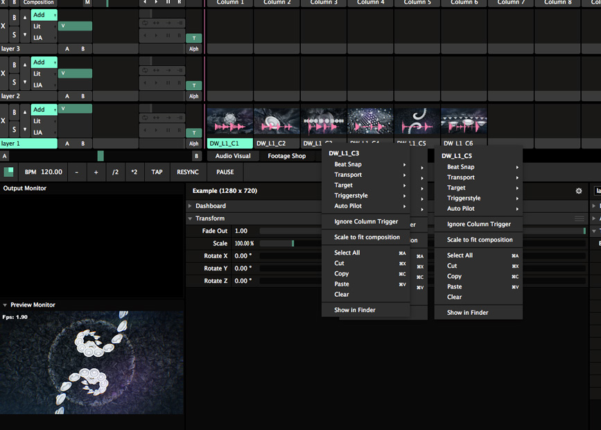 When I first spotted this bug the right click menu on a clip wouldn't go away and I ended up with multi ones - in that case Resolume wouldn't quit (the dialogue did pop up - but I couldn't click QUIT) so I had to force quit. You'll also spot that the clip in preview isn't the one that is selected to preview.