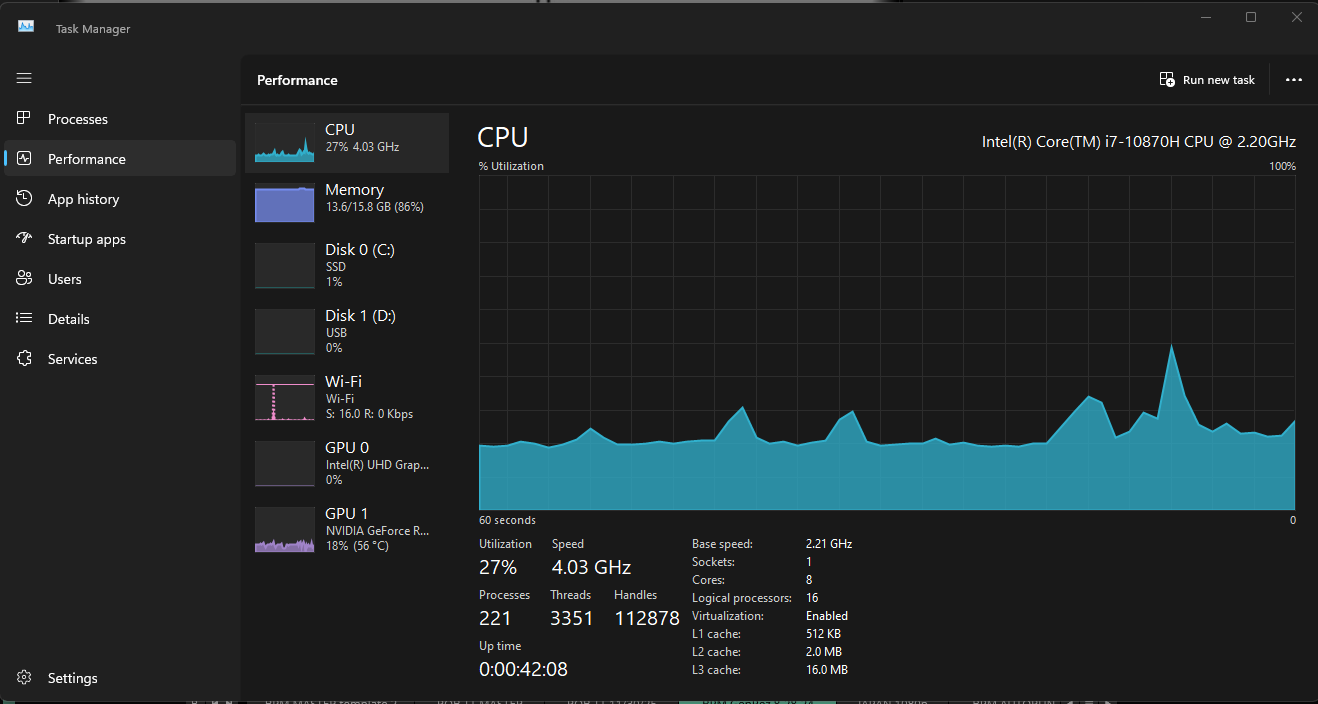 Switched to new Laptop an Alienware m17 R4, i7 10870H 16GB RAM, Nvida RTX 3070 8GB.