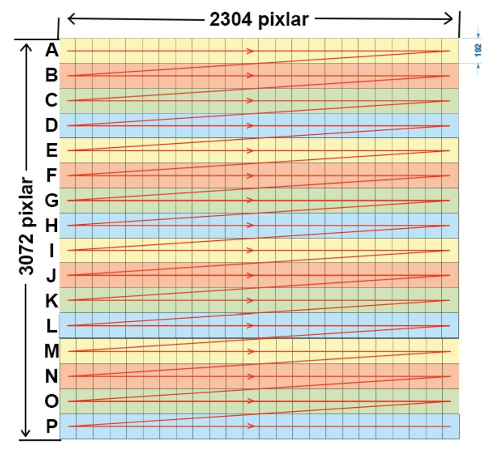 As an example, a logo that moves around the arena screens from left to right. When the logo leaves the 2304 wide canvas it needs to show up in left side row B etc.