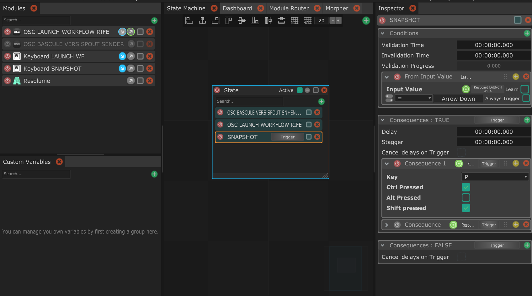 J'ouvre cette question au reste de la communauté et à Zoltan : a t on un moyen de map the snapshot function Dans Résolume?. Et qu'en est il en essayant d'automatiser le raccourci clavier pour le snapshot ? À t on une chance de pouvoir faire cela (avec Chataigne par exemple) et si oui Résolume devra t il tjs être ds la fenêtre active?