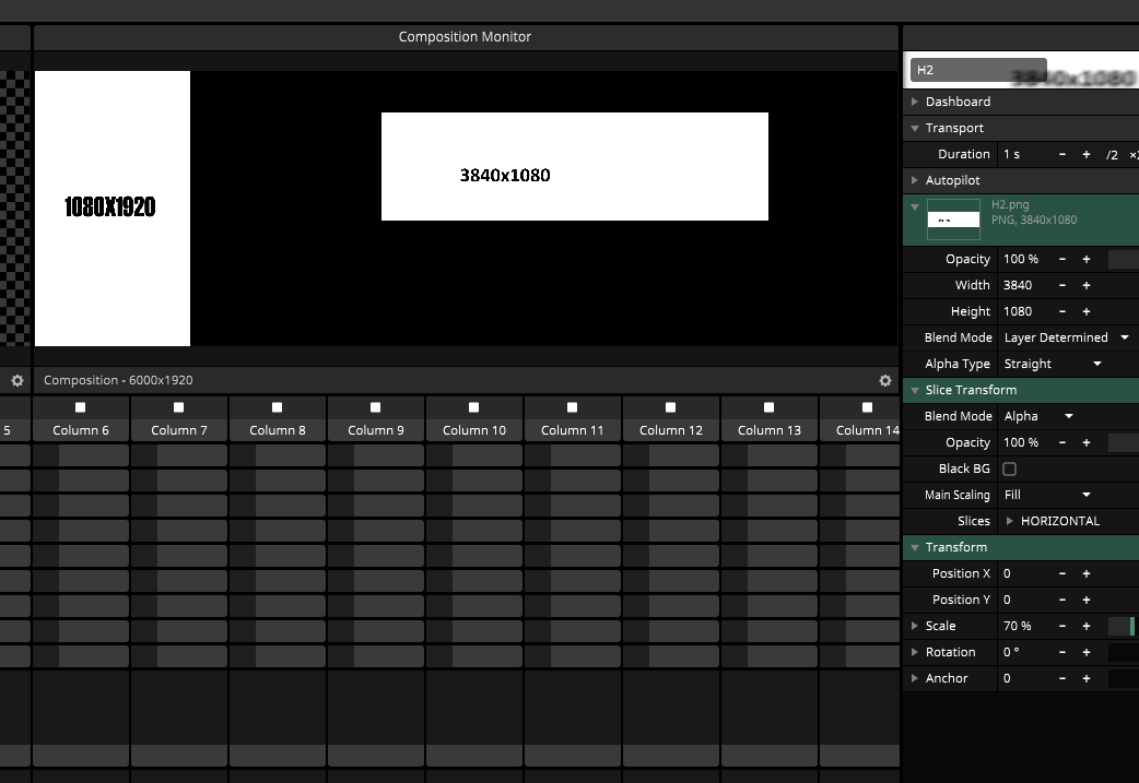 But even at the 3840x1080 size, it became smaller despite the artwork being at the correct resolution, and when I used SliceTransform to increase the size, it filled in, but I noticed that when working with the scale, it doesn't stay centered.