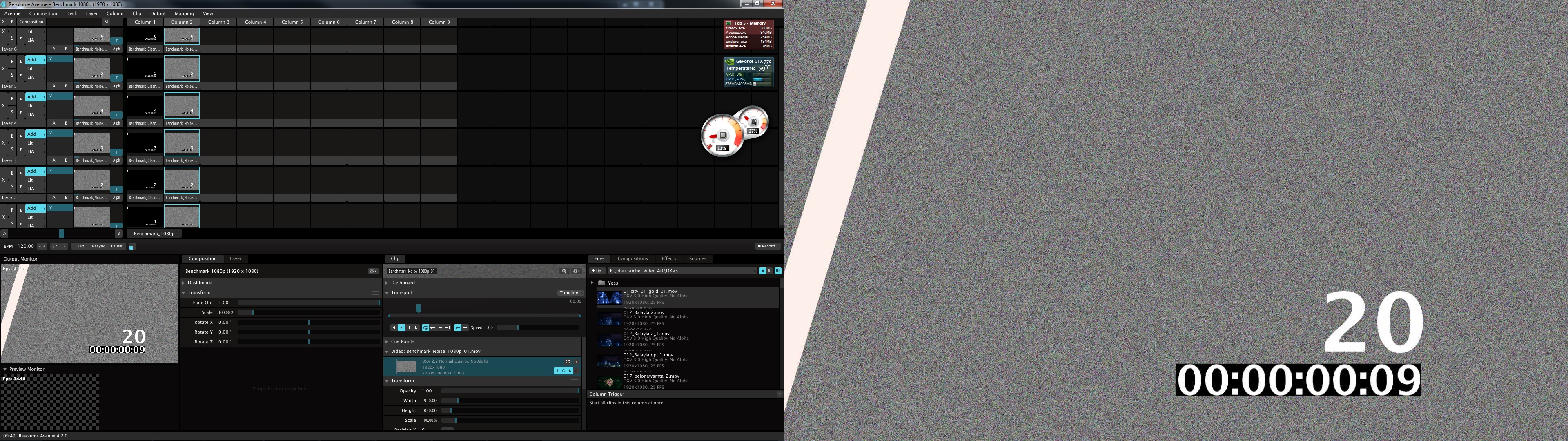 - To test your smoothness use a self-made 50 or 60 fps DXV 2/3 looped test clip. Ideally it should contain horizontal and vertical moving white bars.