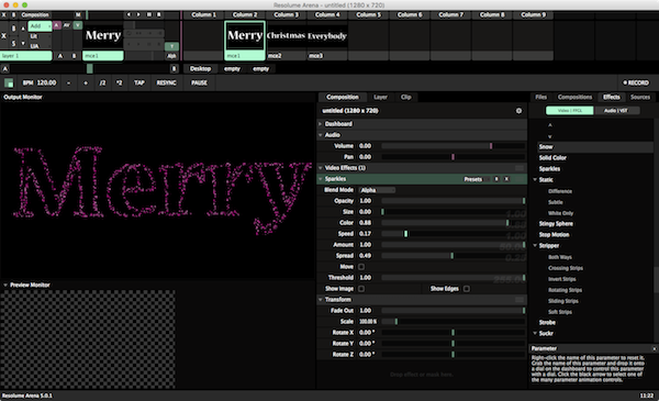 Because this is the season of giving we've made a Sparkles plugin for you. This plugin looks for edges in your footage and then shimmers some glittering sparkles around those edges. It's fun and very Christmassy