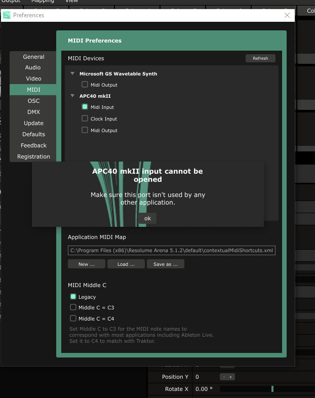 apc40 mk2 cannot be opened make sure port isnt being used by another application