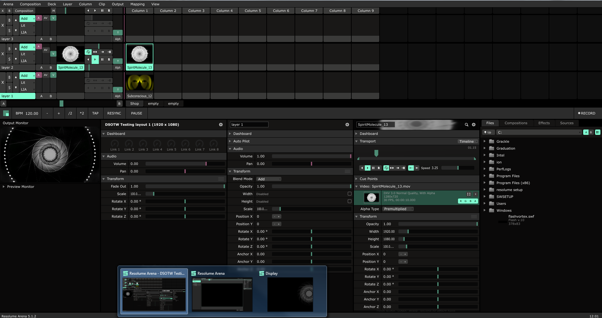 I have a long drive ahead of me (as a passenger) and hope to work on a projection mapped show that will all be triggered from a timeline in a DAW using midi. I will be away from the projector and just want to use the laptop to create the show. Is there a way that the output monitor can show the "arranged projection" (which is a screen within a screen) so I can see something close to what I am doing? For example: On the screenshot below, I want the Monitor Output to show what is only available in the bottom right window entited "Display".