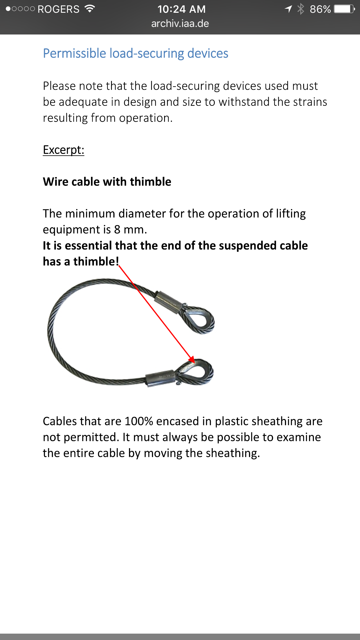 Also, any rigging system is only as good as its weakest link so make sure every part of your safety cables are rated for overhead rigging. One of the things I see in a lot of places is safety cables with dog clips!