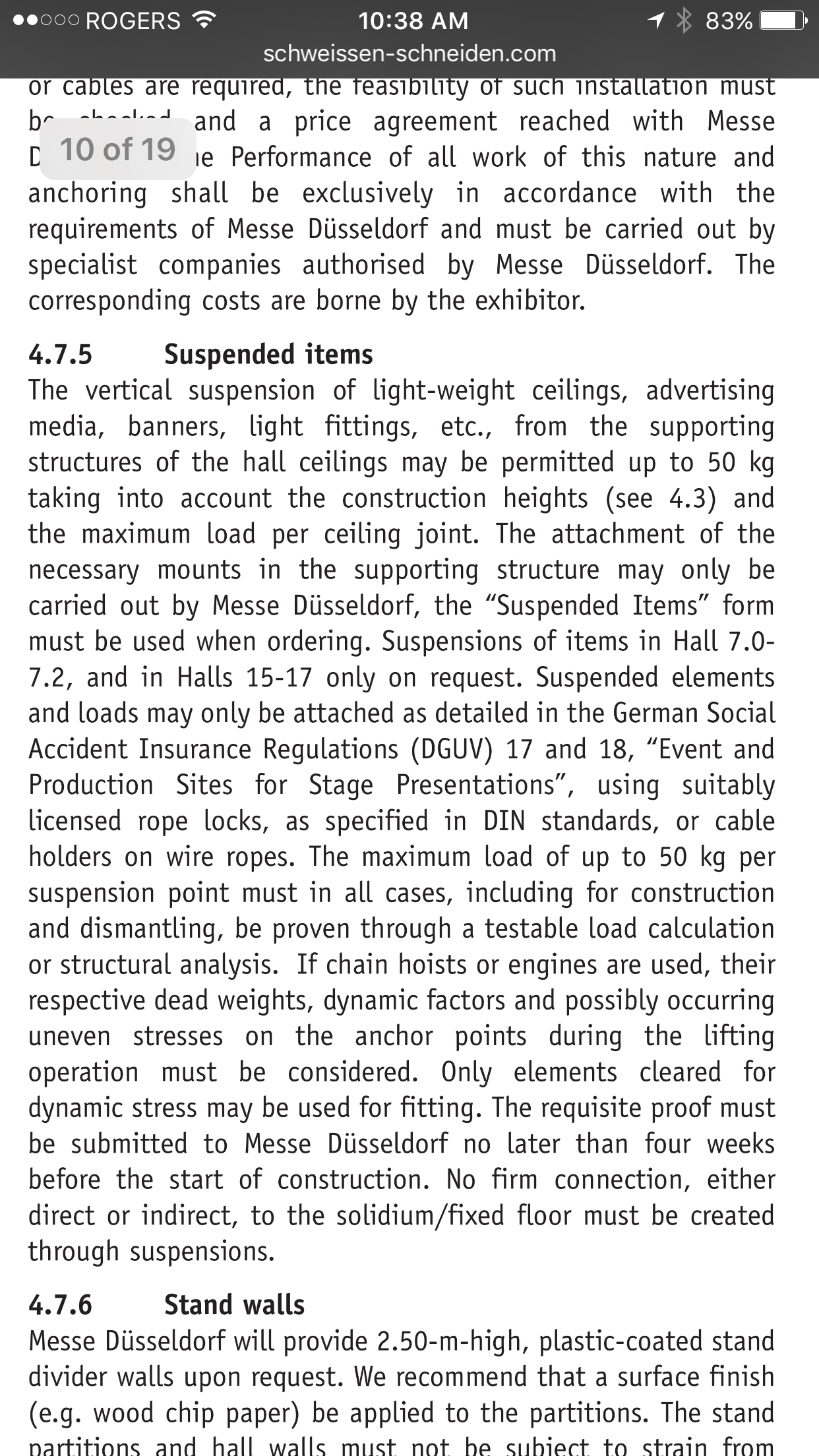 I've done some research and it looks like the DGUV 17 is a requirements for all Messe in Germany but here they are talking mainly for ceiling wiring which is the in house lighting company. I even read that the sweety cable has to be double of the weight, this info was actually on an old PDF from Messe in Frankfurt. The lighting guy was showing a classical projector frame that he could rent for a crazy amount of money of course but I didn't find any specific regulations on which mount I can use on the trussing but only regulations from ceiling to suspended items I.e. Trussing light instead. Therefore if I use my aluminum shelves and bolted projectors individually secured with a certified cable I don't see issue. I'm attaching some screenshot. Thank you I advance for your help, and please feel free to inquire if you need help in regards of regulations in Canada, specifically Ontario and Italy.