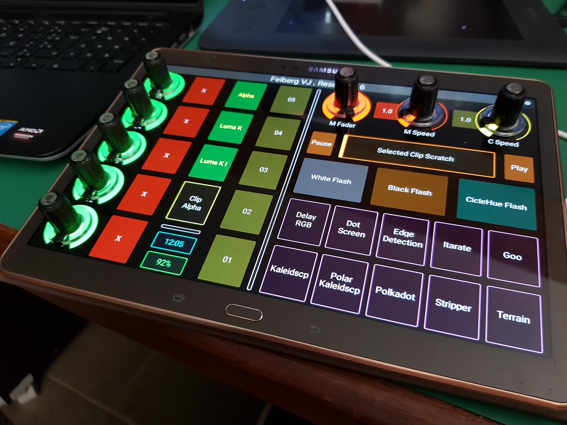 There it comes, my first personal and custom layout for Resolume 6. Fully functional, with the usage of Tuna Knobs.