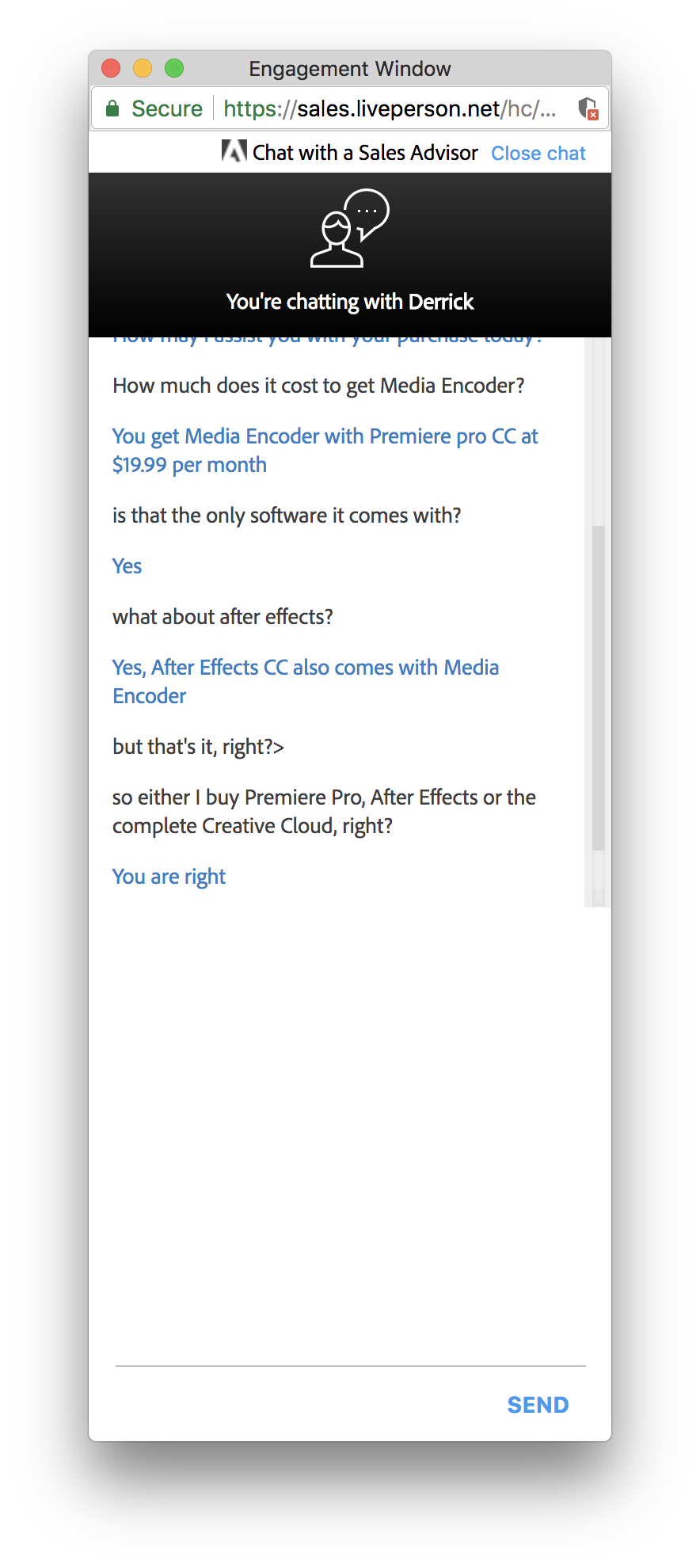 subpixel wrote:Adobe Media Encoder was the one thing that made me cave in and get an Adobe licence; which is currently Over $70 per month (the price went up about 50% since subscribing).