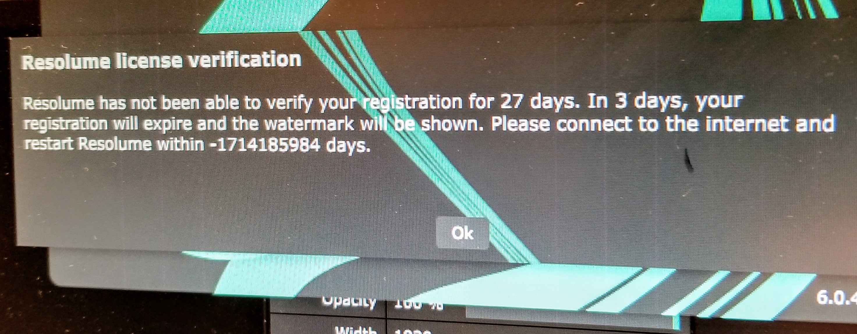 Finally what i feared has happened. I used Resolume 6 yesterday and without any internet connection and today when I wanted to download a few files from the net so i connected internet and download those files from motionloops. now just the check those files i open Resolume Arena 6 and found my licence gone and the resolume text and sound start coming. Just imagine if i am taking my machine for a show and if this happens there. what will i do. you said you need to connect internet to keep the licence alive but in my case it got dead. This is tragedy