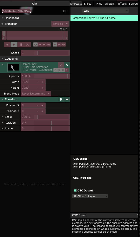 Having Resolume send out the clip name of layer 1 via OSC, everything is going lovely via