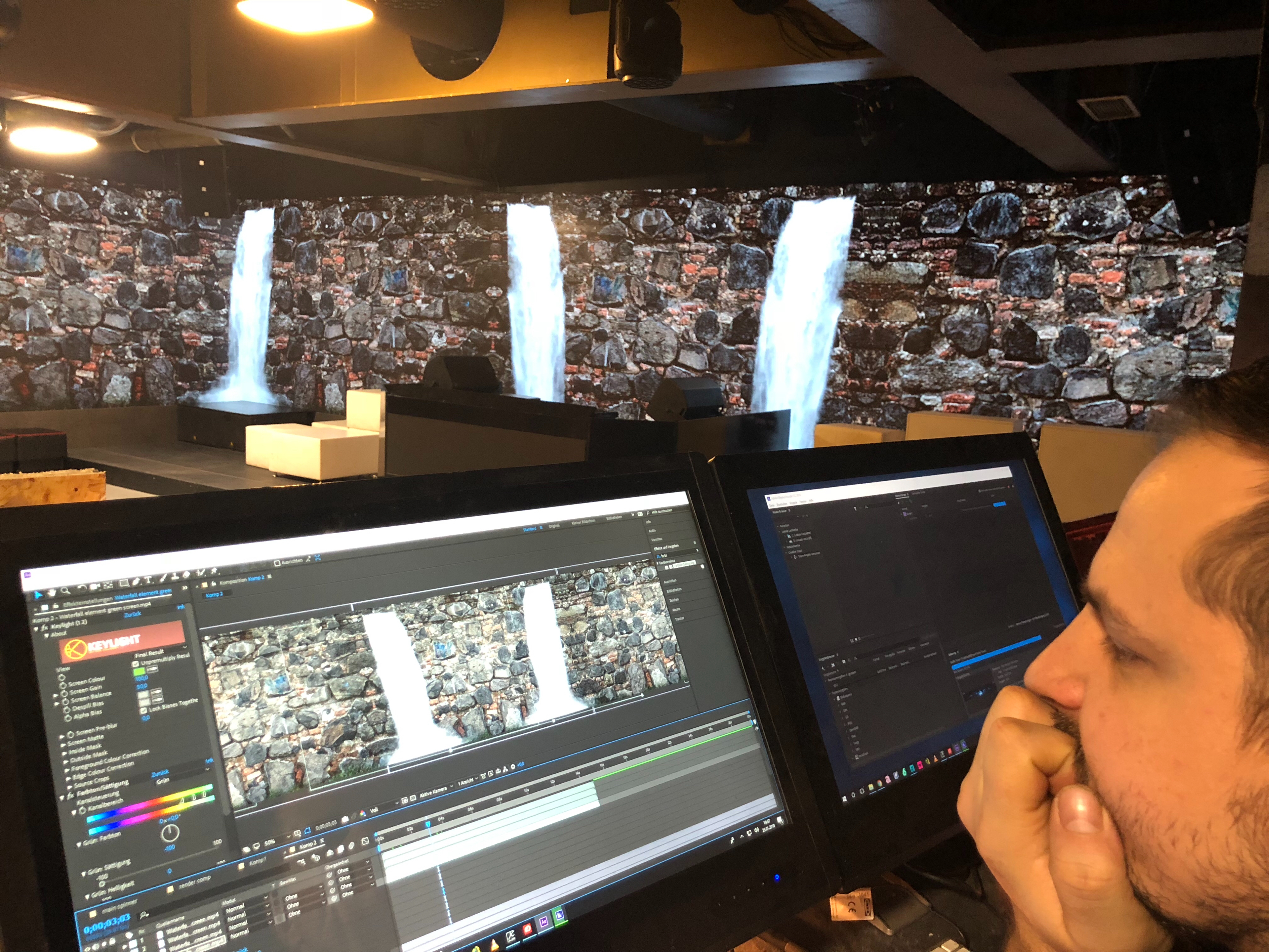 The recording of one of our theatre's plays, Resolume providing the 4 signage displays with input.