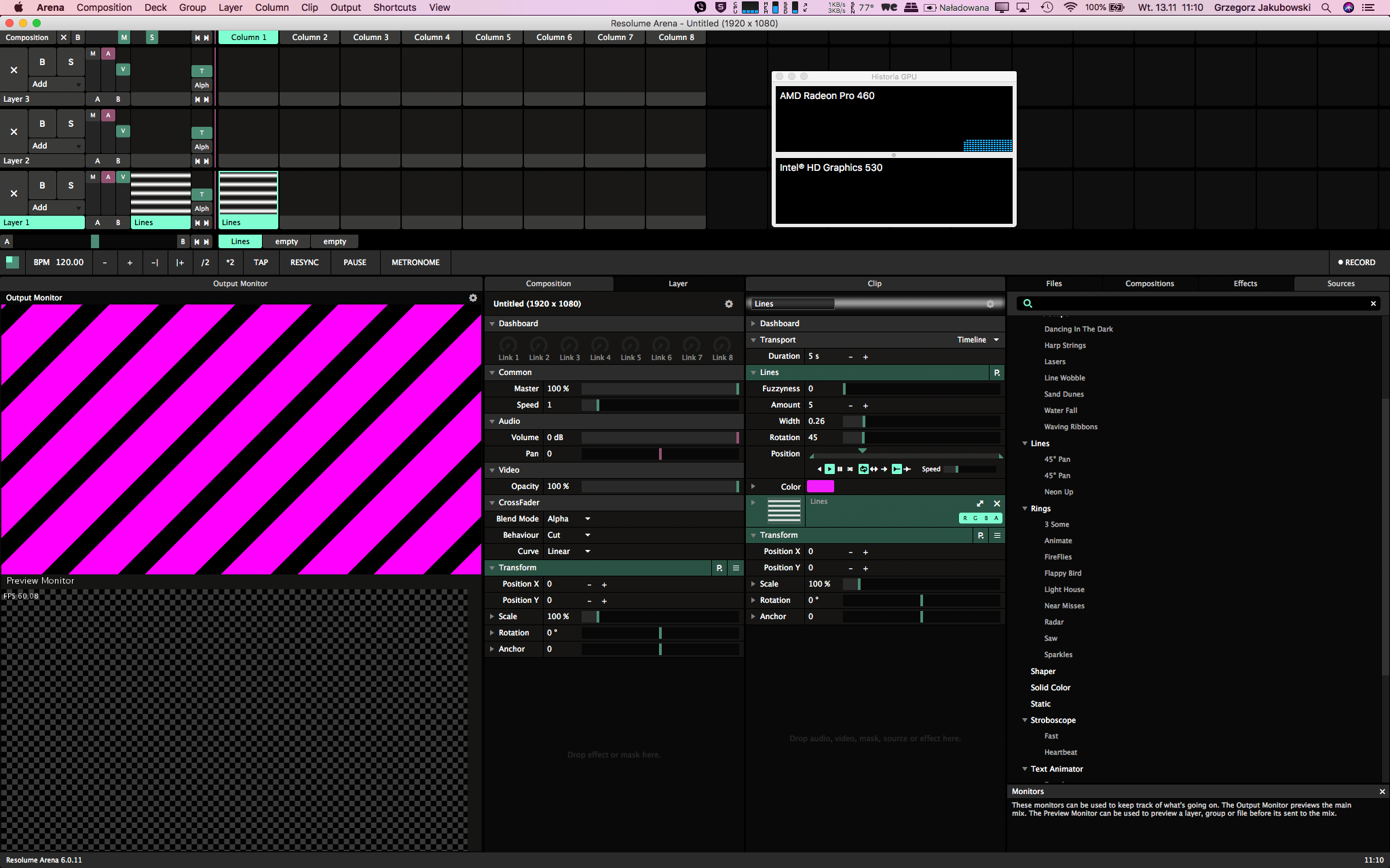 veselyiveter wrote: Sat Dec 15, 2018 00:03 The same problem even with eGPU. It drives me crazy. Macbook pro 2017 3.1 radeon 560 Mojave 14.2 clean install. 80% of the times o get around 60fps with 4 fhd layers, but suddenly it drops to 35-40fps even on 1 layer, stays there for 1-2 minutes and back to solid 60fps. Worth is that the same happenes with eGPU vega 56 8gb in Razer Core 2 enclosure, which runs 6 4k layers super smooth and then droping one layer to same 35-40.