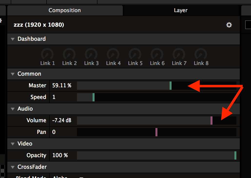 Is there somewhere a fader for the "master output channels", maybe it is set to zero? I cannot find the master output channels in the Resolume GUI.