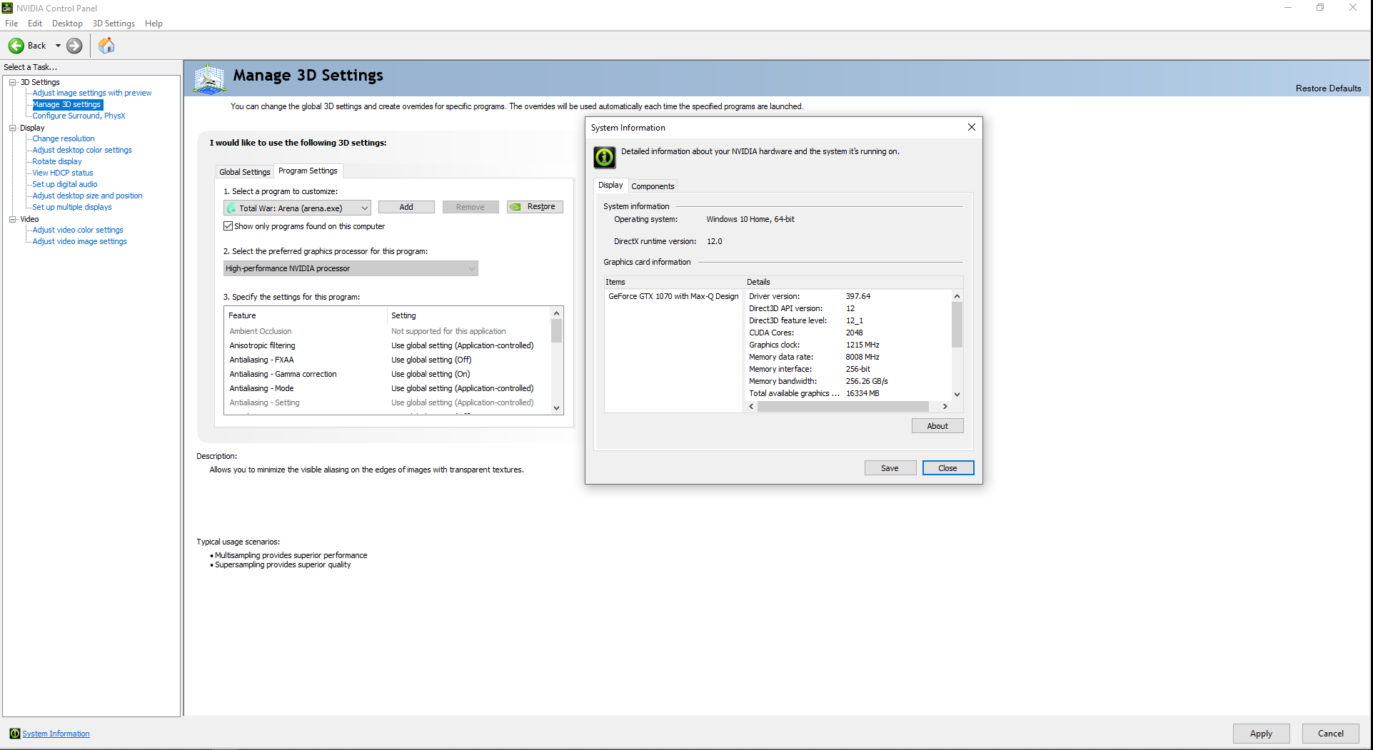 The driver version is not the newest, but a stable one that's solid an reliable, and you have to check al windows annoying settings regarding scaling and the display, and set everything to maximum performance