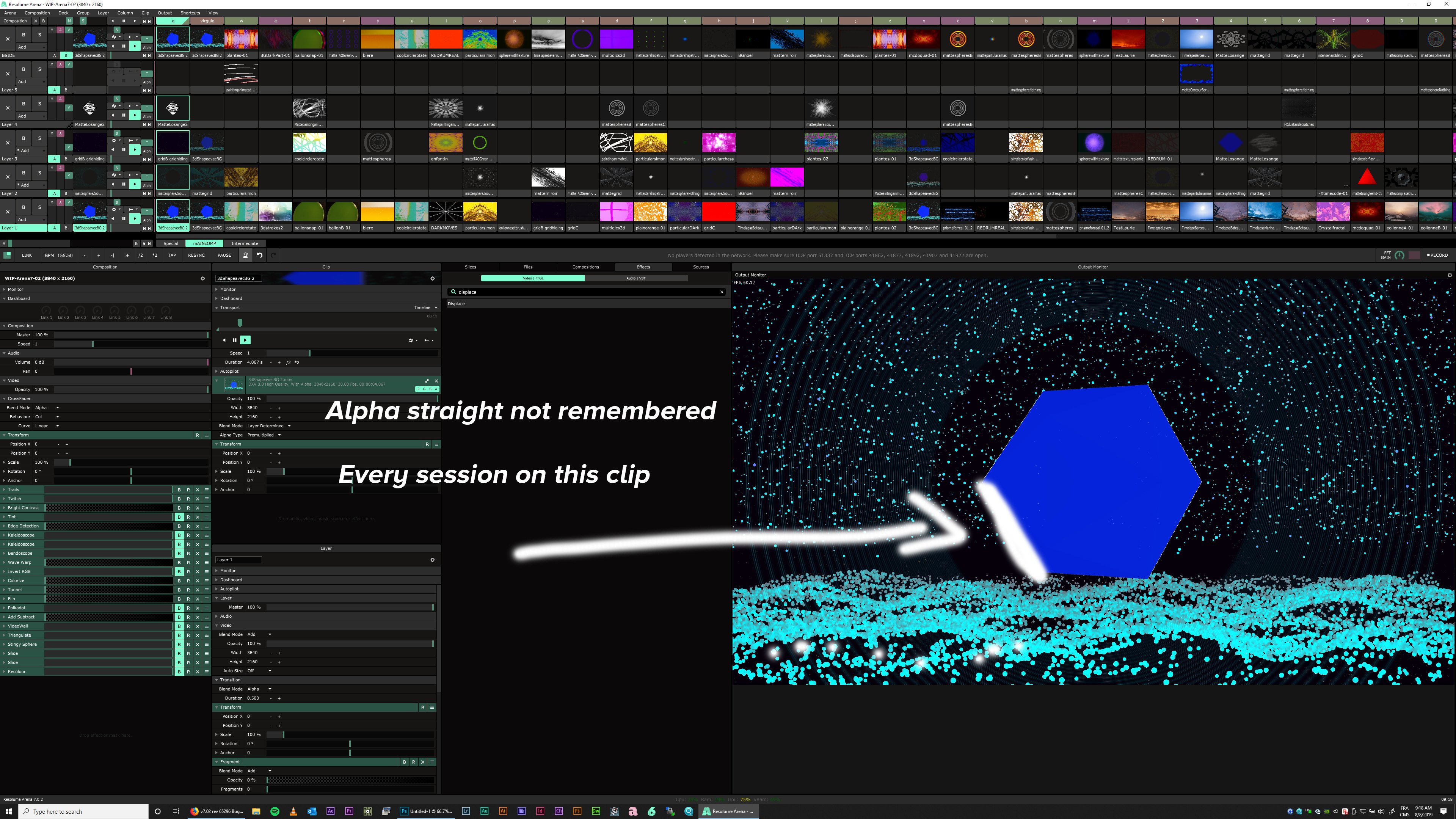 Thanks, made a ticket.vj-01 wrote: Sat Aug 03, 2019 17:40 -The clips aren't remembering difference between premultiplied and straight alpha trough sessions even though I hit ctrl+s (most annoying situation is to start back at every session and lots of clicks...)