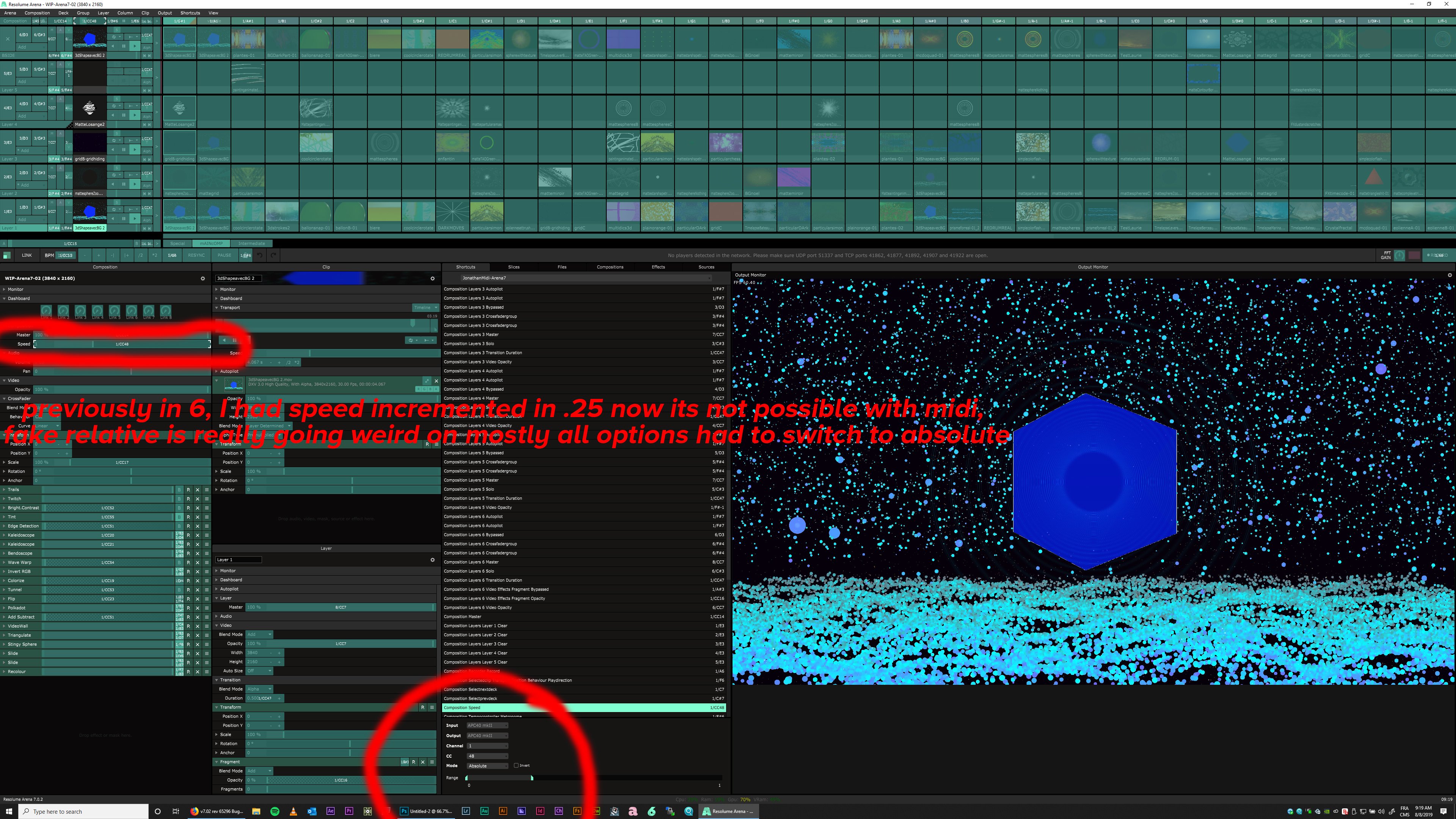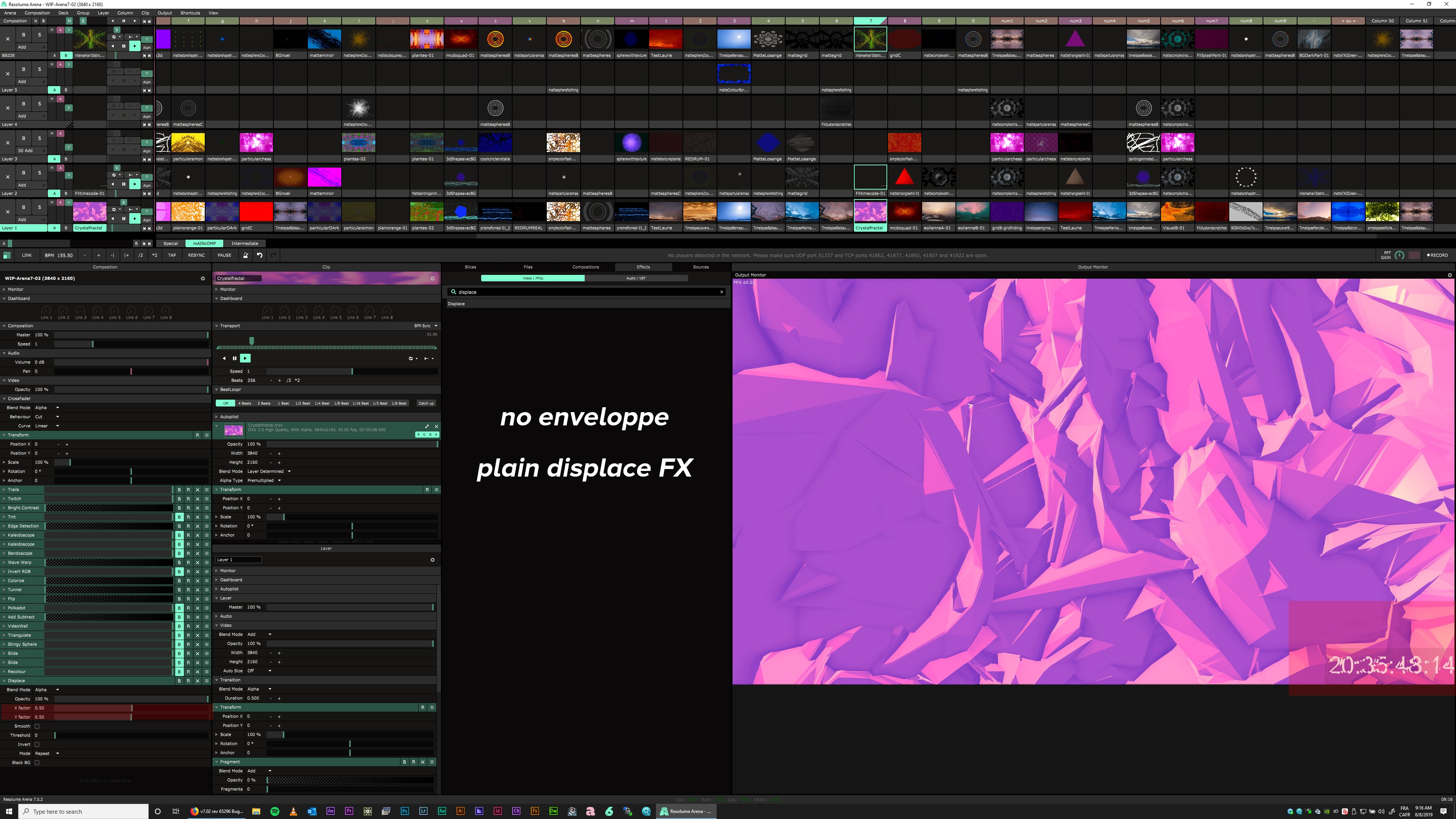 -Displace 0.50 x and y is not centered with apc40mkII so even tough you recenter the effect on multiple layers is it still distorted. Can't remember which but also some effects works badly with midi controller and used to work great in version 6