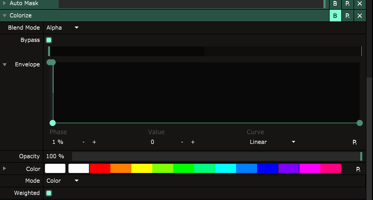 EX: Bypass for Hue Rotate On at 0% to 1%, Bypass for Hue Rotate Off above 1% and actual hue value changes happen between 1% and 100%