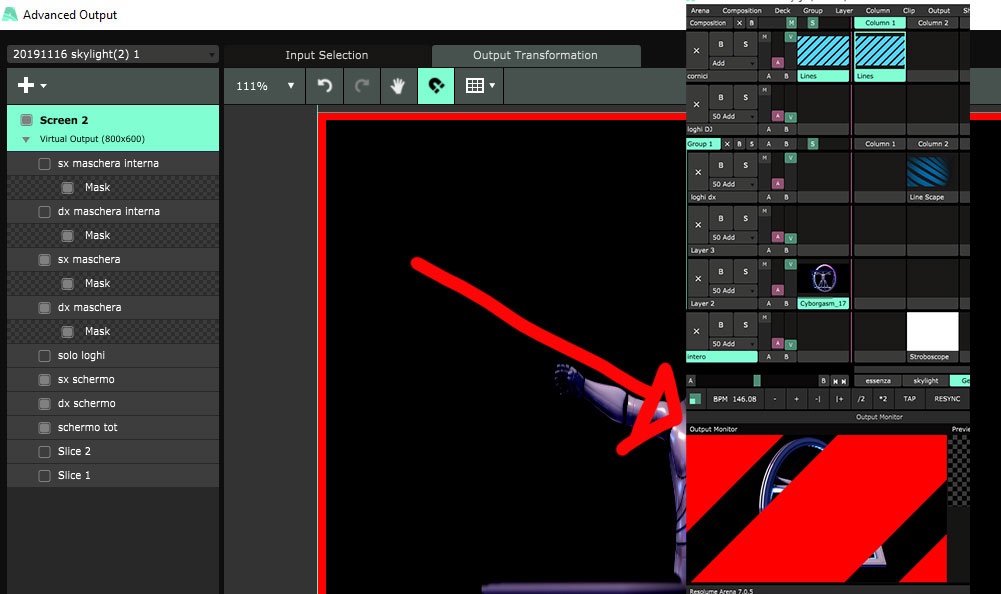 the output is ok, no problem, so I try to have also the preview like the output. in the output there aren't the black lines overlay.