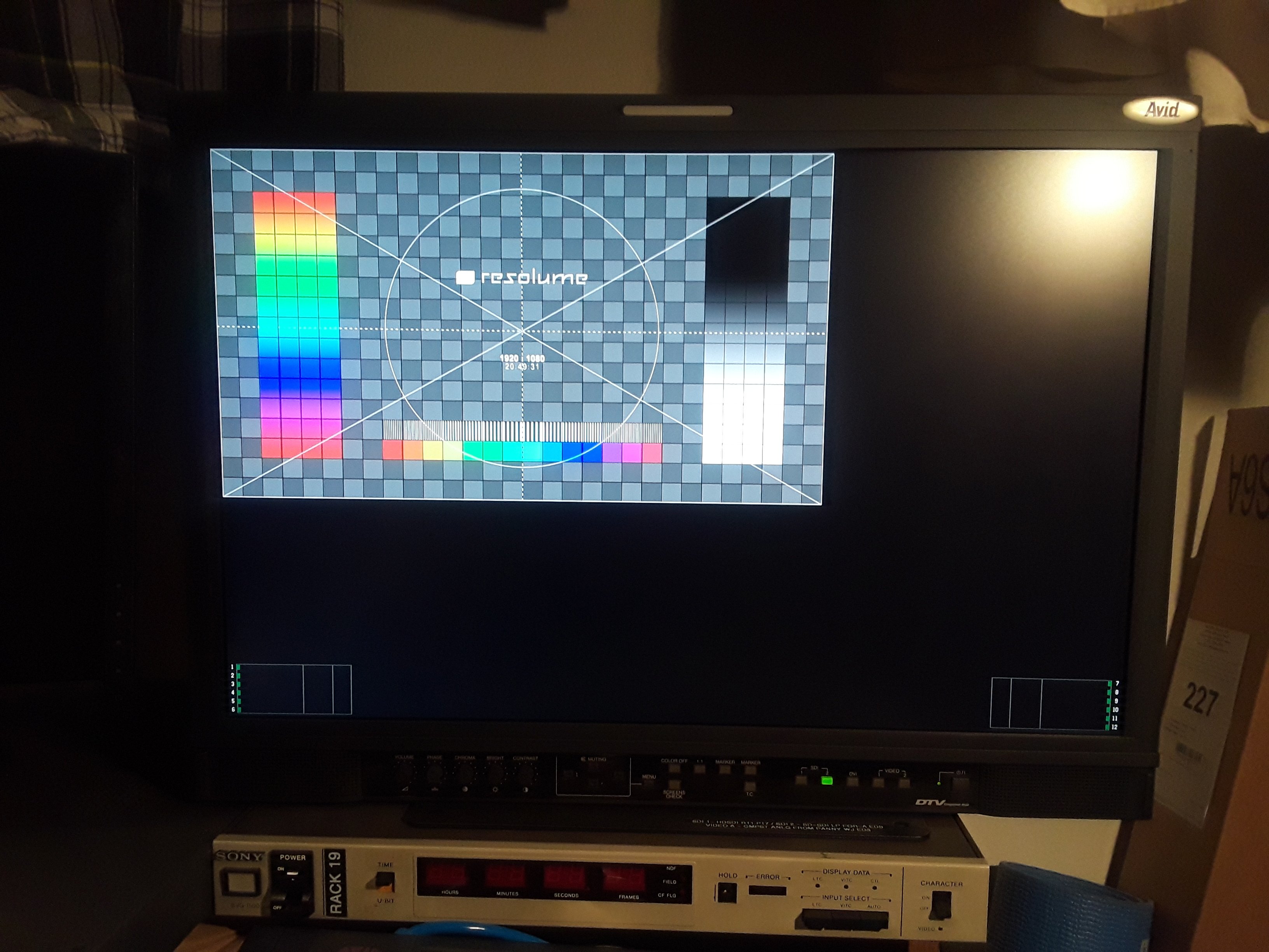 All (4) SDI channels outputs to a broadcast-quality, professional monitor with the entire picture squeezed down to about 1/3 size (see pictures, attached). We have tried messing with the adjustments, but to no avail.